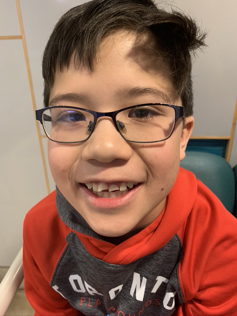 Early in February my son fell walking up some basement stairs at a friend’s place; he banged his head, knee and cut his finger. When he was waiting for a band-aid, he felt dizzy and passed out, falling forward and breaking his two front teeth on the kitchen floor. After six hours at Sick Kids Hospital it was determined that he did not have a concussion, his knee was just bruised, emergency first-aid dental procedures would be enough to seal his broken teeth (until we could see our regular dentist) and 4 stitches were needed for the finger cut. After 3 weeks the internal tooth fracture healed well enough that our dentist could build his teeth back up.